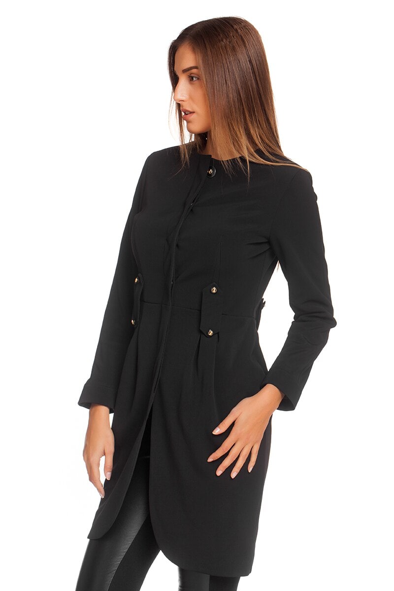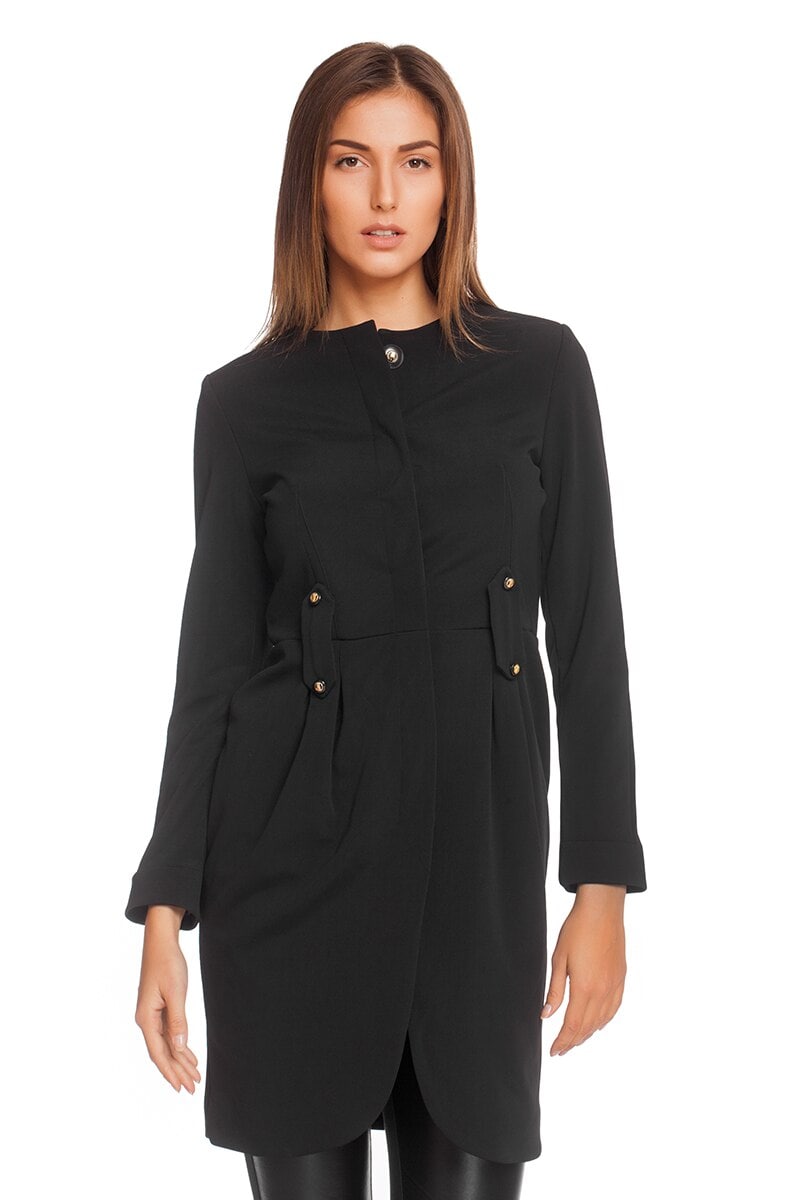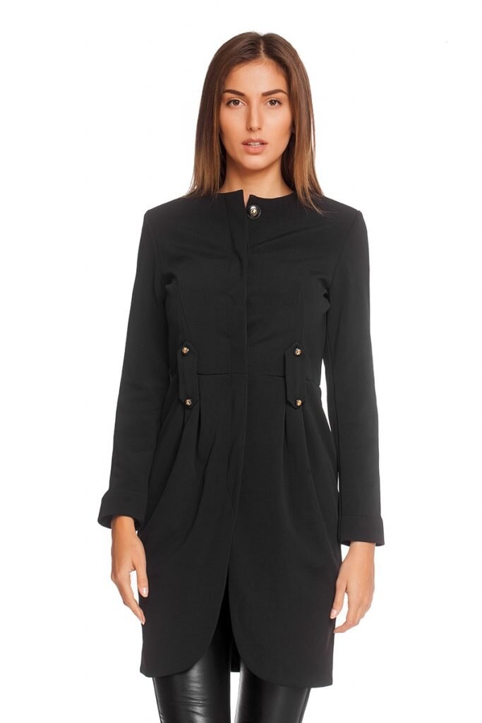 Атрактивно черно манто с копчета. Приятна и удобна материя, която прави дрехата чудесна за сезона.