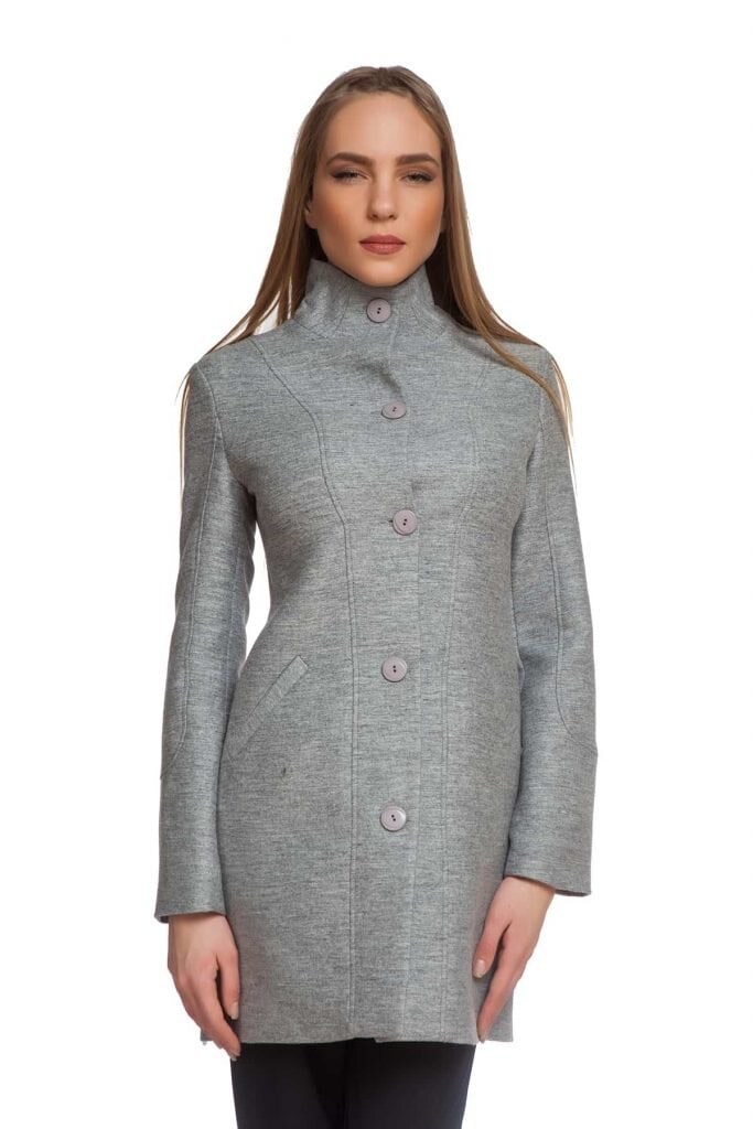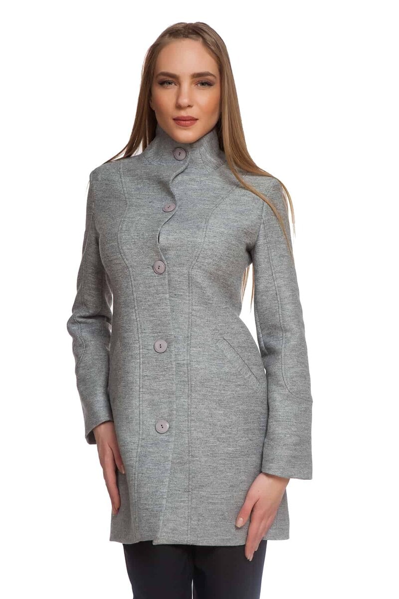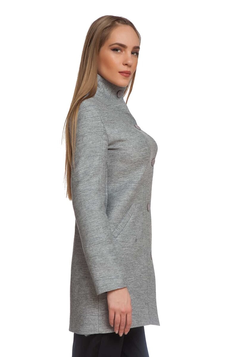 Елегантно палто DESIRE. Сиво и вталено палто с висока яка и закопчаване с копчета.