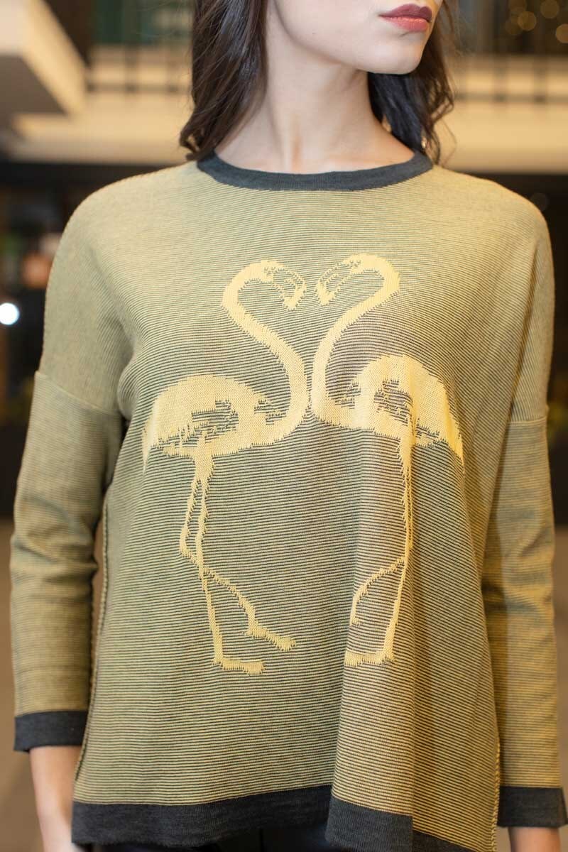 Плетена дамска блуза Pelican. Тази ежедневна блуза е изработена от финна прежда и е с вплетена красива картинка пеликани.
