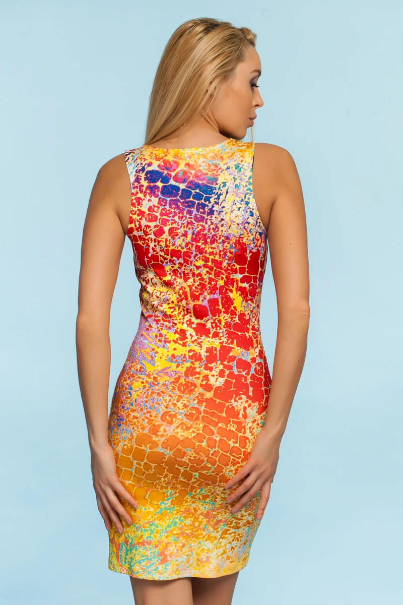 Лятна рокля без ръкав с дизайнерски принт от приятен неопрен.