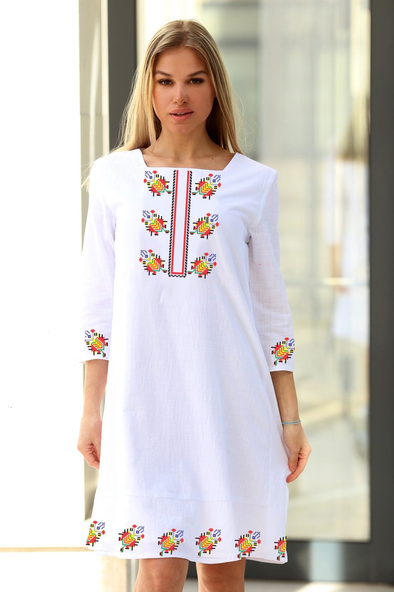Бяла рокля с бродирана шевица AGLIKA